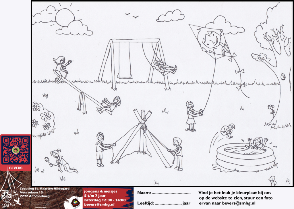 Voor het Cultureel Zomerfestival 2024 heb ik voor mijn Scoutinggroep Sint Maarten-Hildegard een kleurplaat gemaakt. Deze is op A0-formaat uitgeprint en opgehangen zodat kinderen (en ook volwassenen) deze samen konden inkleuren.